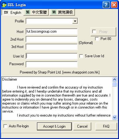 Input the host name, User Id, password and click login. The Host will be saved as default setting until any change. For those users who login for the first time, they will be required to change the password.