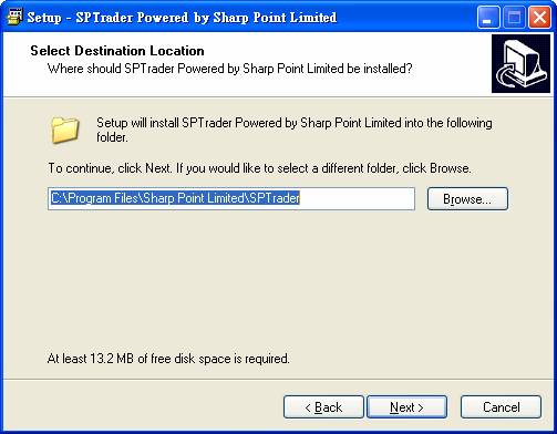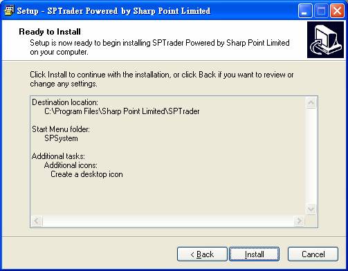 Define the folder to place the SPTrader shortcut in the "Start Menu". Click "Next" button to continue.