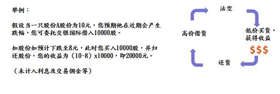 Assuming the share price of a stock A is $10 and you anticipate it to decline in the near term, you can instruct BOCOM International to borrow 10,000 shares.