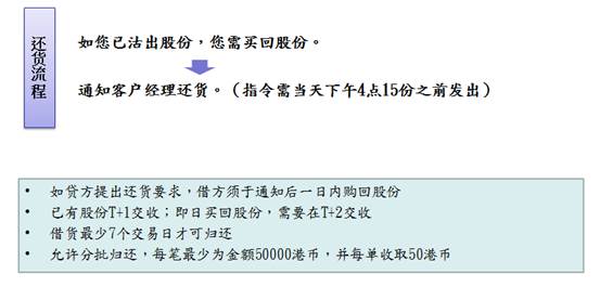 · The borrower is allowed to return by batch and each batch shall be worth a minimum of HKD50,000. HK$50 will be charged for each transaction.