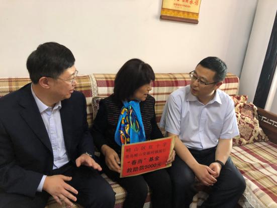 5月3日,我行与崂山区红十字会共同发起设立“崂山春雨专项基金”。5月24日,基金启动首笔定向捐助,崂山区红十字会常务副会长付长伟、崂山区红十字会专职副会长黄英、我行行长盛亮、副行长姜锋共同为困难居民捐赠“春雨基金”。