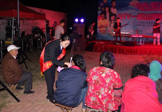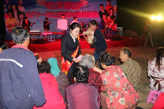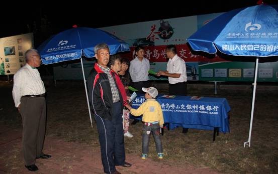 9月份是银监局“金融知识宣传月”和人民银行“金融知识普及宣传月”活动宣传月, 9月25日晚,我行与崂山电视台一起走进享有“千亩茶园、万亩山峦”美称的二龙山景区所在地王哥庄街道晓望社区,举办了第五场“心系崂山”进社区文艺晚会。我行利用本场活动与晓望社区居民进行了沟通交流,将金融知识送到社区、送进农户,更送去了崂山交银村镇银行的公益之心。