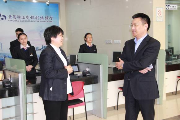 12月31日下午,青岛分行杨勇副行长率分行授信部、资负部负责人,代表分行党委看望慰问崂山交银村镇银行干部员工,并送来了分行的慰问品。杨勇副行长详细了解了村镇银行的收官情况,询问年终决算安排,代表分行党委祝贺村镇银行一年来取得的可喜成绩,并向全行干部员工送来了新年祝福。
