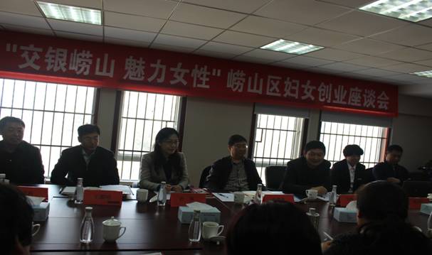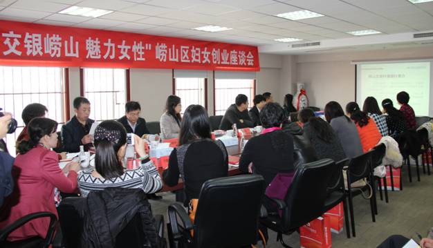 为庆祝“三八”国际劳动妇女节,2015年3月6日由崂山区妇联主办的“交银崂山·魅力女性”崂山区妇女创业座谈会在我行举行。崂山区政府副区长纪晓龙、区政协副主席刘明佳,区妇联主席杜萍,区人社局、发改局、农林局、海洋与渔业局、旅游局等部门负责人及20多位崂山区妇字号企业的负责人参加了会议。行长韩向红宣讲了我行专门针对崂山区创业女性的金融服务方案,并与崂山区妇联签署了战略合作协议。我行还为四个街道配置了专属服务经理,并现场授牌。与会领导及女企业家们纷纷发言,介绍产业扶持政策及企业情况、畅谈创业心得、提出服务需求,座谈会气氛热烈、成果喜人。会后,我行将继续跟进,与区妇联一起为全区妇女发展和创业尽我们的全部力量。