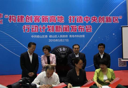 2015年5月27日,我行参加了由中共崂山区委、崂山区人民政府和青岛市科技局联合举办的青岛市崂山区“打造青岛中央创新区 构建创客新高地”行动计划新闻发布会。区委常委、副区长王清源对我区的相关行动计划进行了现场发布,海尔集团等创客代表作了交流发言,清控科创控股股份有限公司、青岛大学、海洋大学、科技大学、海尔集团、市引导基金管理中心等单位分别与区政府签署了创新创业战略合作协议。