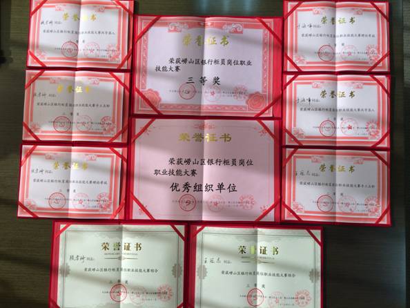 我行选派段孝琦、于海峰、王冠杰三位选手参赛,三位柜员提前一个月就进入备赛状态,每天早来晚走、利用工作间隙和休班时间苦练技能、全力备战。功夫不负有心人,在此次大赛中,三位选手在点钞、打字、基础知识三项比赛中均名列前茅,共取得了两个单项二等奖、四个单项三等奖、两个综合三等奖。按照3名选手3项比赛综合得分总成绩,村镇银行获得此次大赛团体第三名的好成绩,区总工会将授予我行“崂山区工人先锋号”荣誉称号。