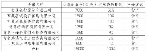 青岛崂山交银村镇银行是经青岛银保监局核准、由交通银行和六家境内非金融机构企业法人共同出资设立的主要为当地“三农”及中小微企业发展提供金融服务的独立的银行业金融机构企业法人。