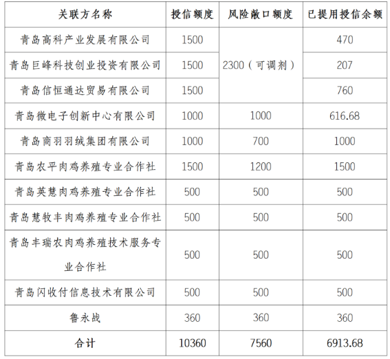 截至2023年末,全行重大关联授信额度10360万元,敞口7560万元,已提用授信余额6913.68万元。详情见下表:
