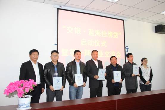蓝海股权交易中心常欣总经理率20余家已在或拟在四板挂牌的崂山企业参加了启动仪式,区科创委、金管委、服务业发展局(金融办)、财政局和经发局的分管领导与企业家们进行了面对面的沟通和交流。仪式上我行与首批6家企业签署了“交银·蓝海挂牌贷”授信意向书,为首期10家企业授予了“交银·蓝海企业家俱乐部”会员证。