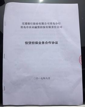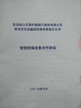 日,我行联合交通银行青岛分行与青岛市农业融资担保有限责任公司共同签署了《信贷担保业务合作协议》。三方将在涉农信贷担保业务方面开展合作,为支持青岛地区三农经济发展开辟新渠道。