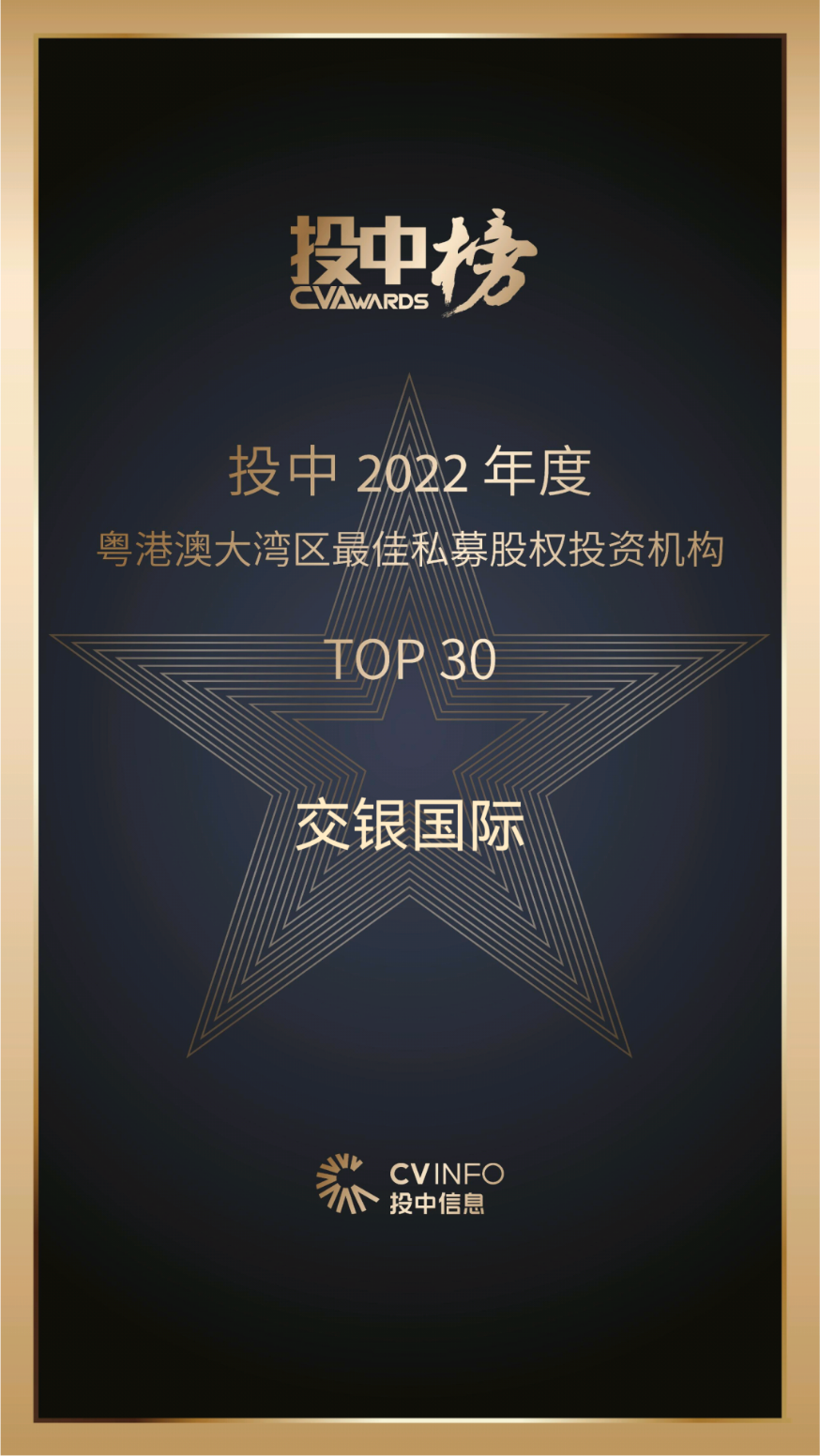 交银国际获评“投中2022年度粤港澳大湾区最佳私募股权投资机构TOP30”