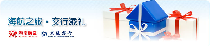 每日9:00起在海航官网(www.hnair.com)下单订购海航机票,并使用交通银行网上银行在线支付票款的前15名客户,还将获赠时尚炫礼一份。